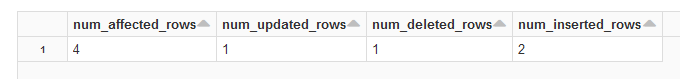 W efekcie widzimy, że wszystko odbyło się zgodnie z planem i cztery wiersze zostały wstawione, zaktualizowane lub usunięte: